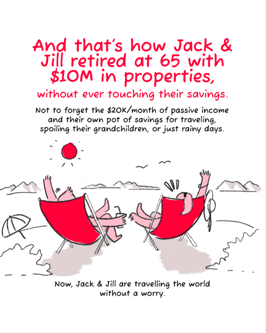 Meet Jack and Jill. Their story isn’t about winning the lottery or inheriting a fortune. It’s about a series of calculated decisions, starting with their very first home, that propelled them towards an incredible retirement at 65 with $10 million in properties and a $20,000 monthly rental income. Let’s step into their shoes and see how they did it.